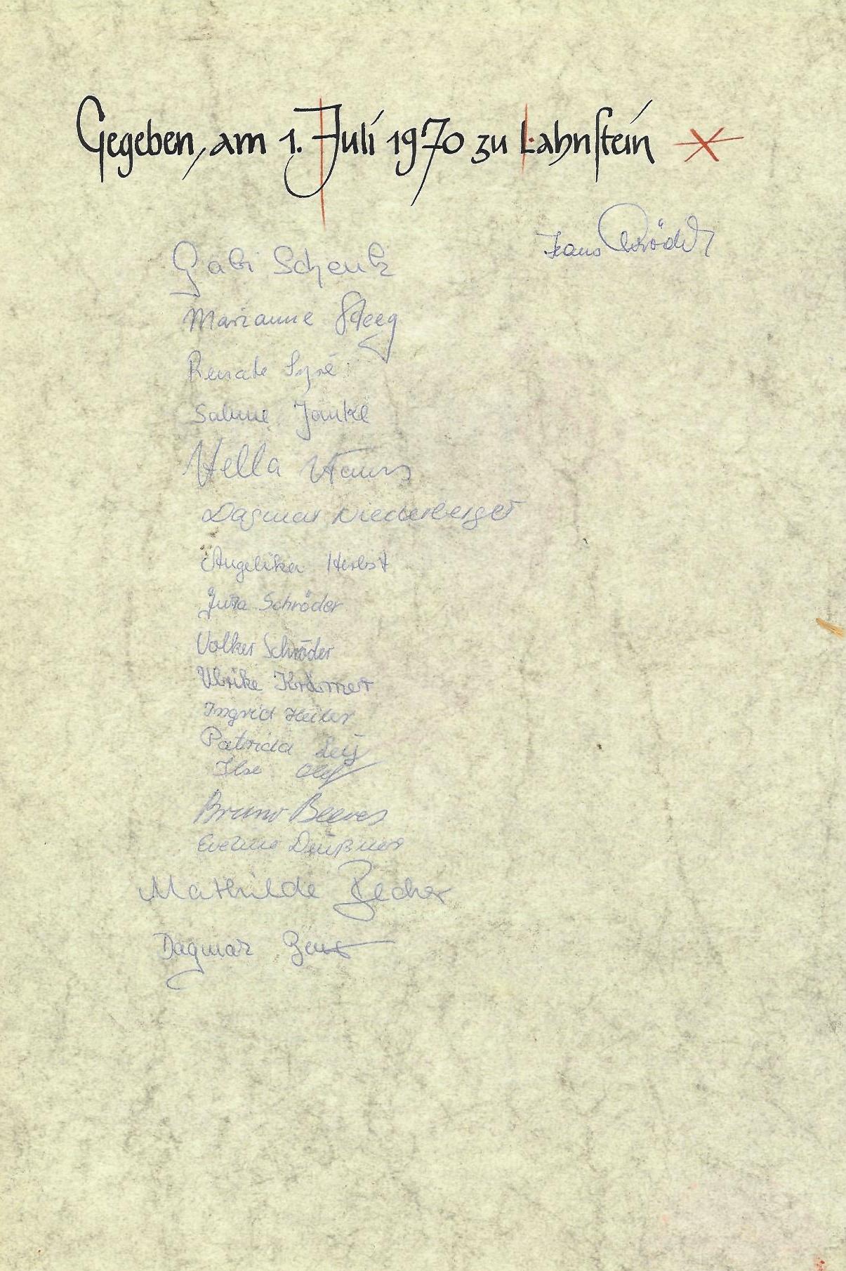 vom 01. Juli 1970 im Salhof in Lahnstein: