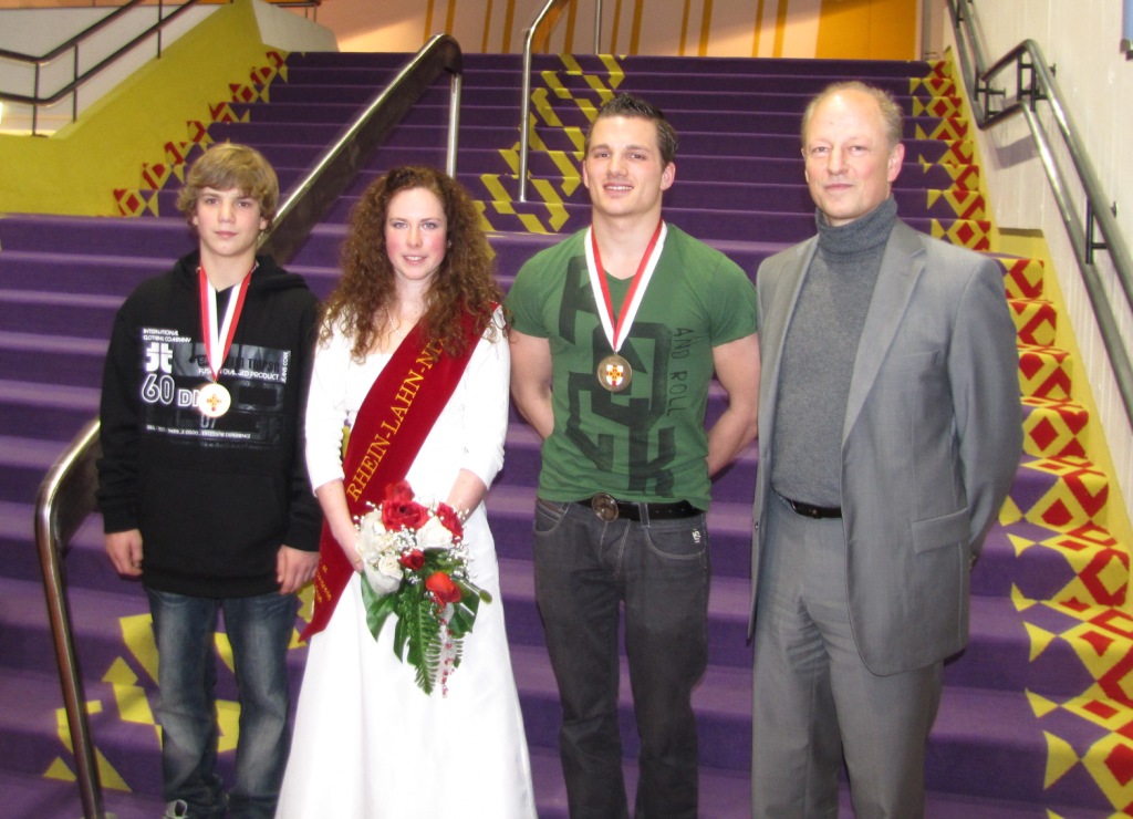 Luca Christ (Rang 1 Männer), die Rhein-Lahn-Nixe Sabrina II, Sebastian Niel (Rang 3 Männer) und